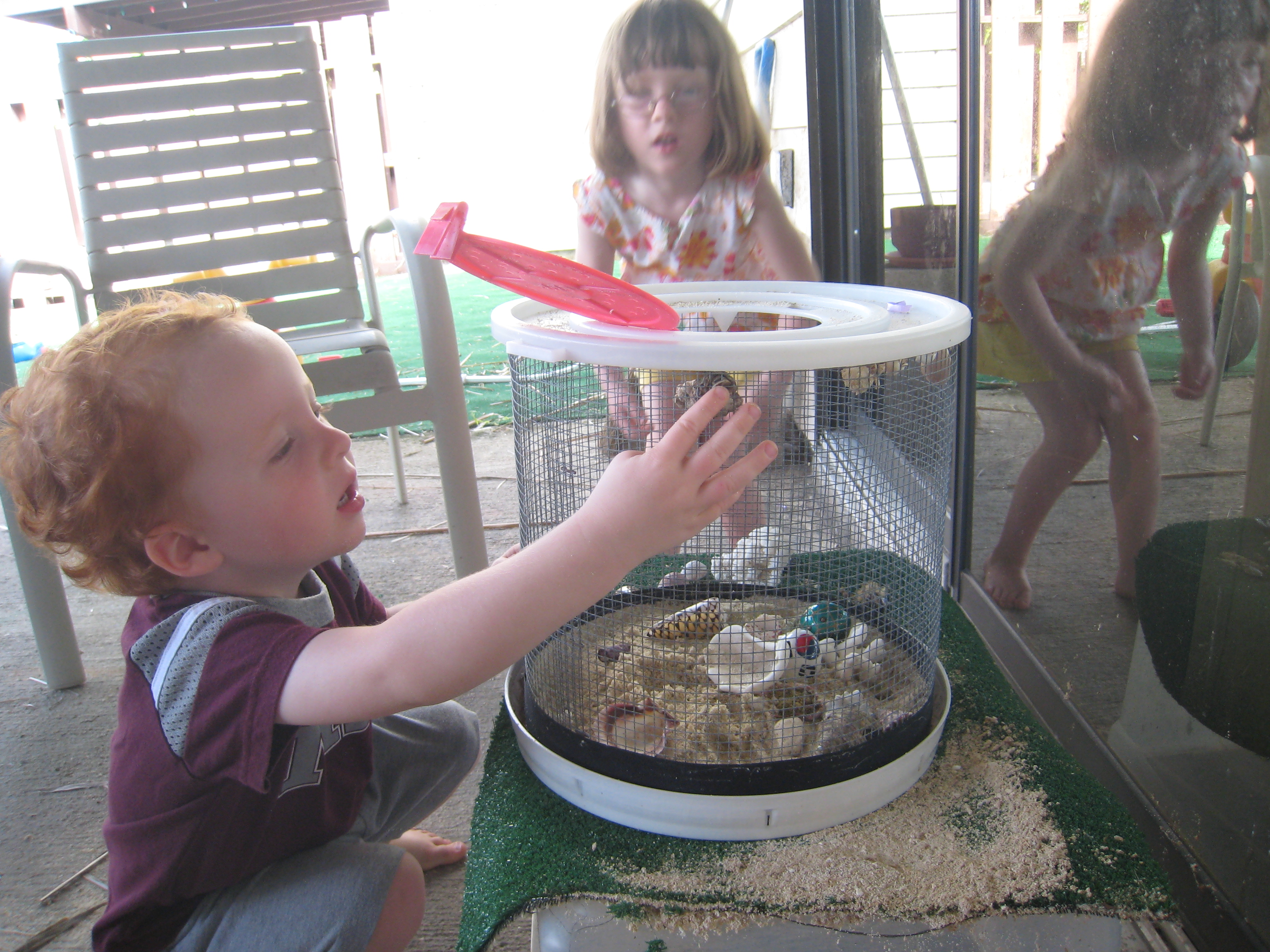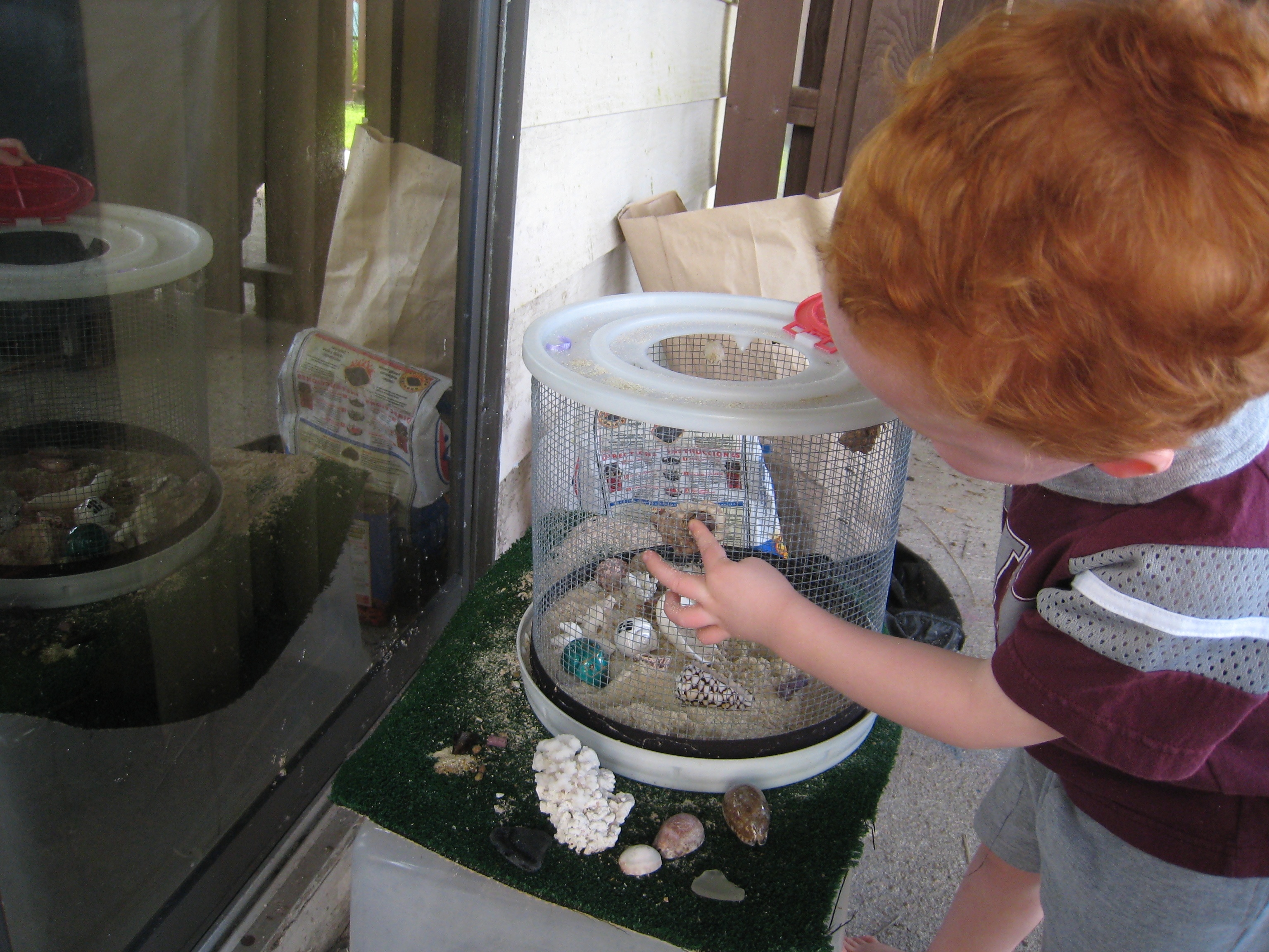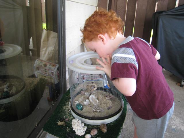 David wondering what will happen when he pokes the legs of the hermit crabs.