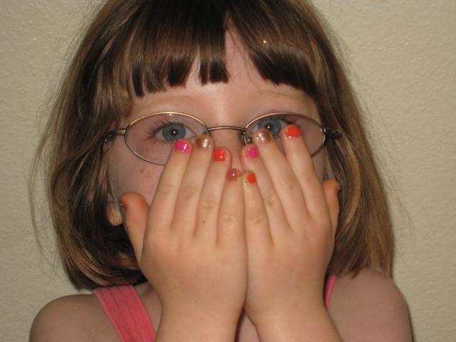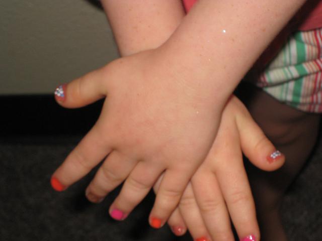A pedicure in multiple colors. Our little extrovert goes into her brave new world making a colorful statement! :) (Please, God, may it never be hair we are doing rainbow colors on!)