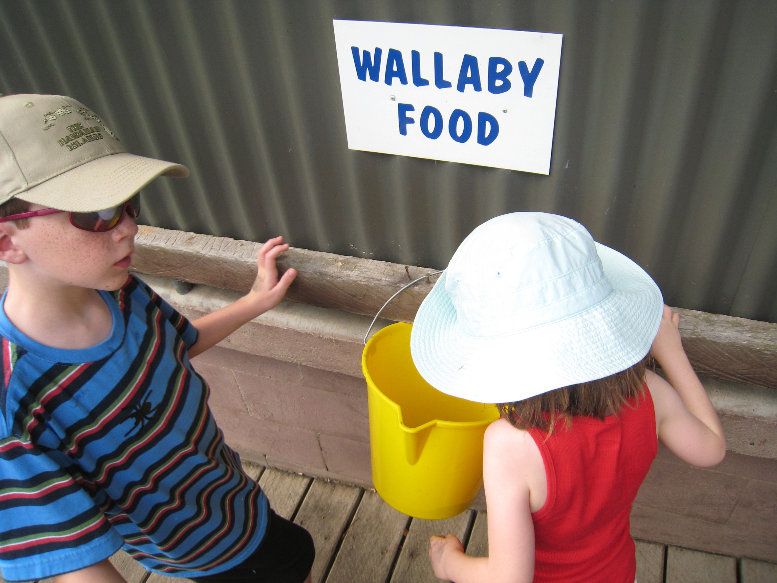 You know you are somewhere different when a sign says: "Wallaby food!" We were just glad they were tame, walking around freely, and that we weren't what the sign meant! :)