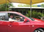 In a taxi in Cairns (David cannot believe his great luck to get to ride around in cars again!)