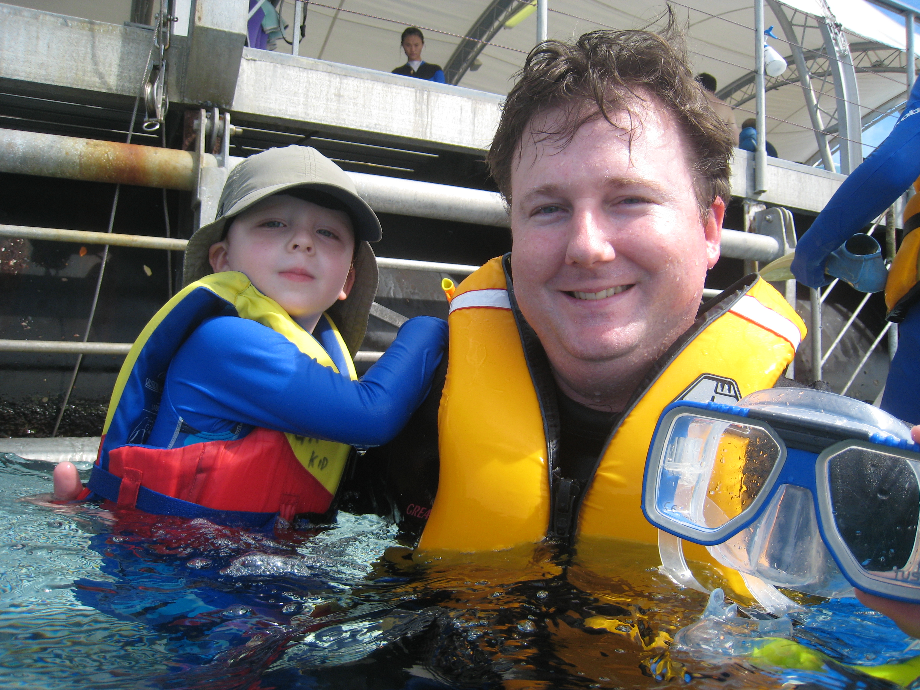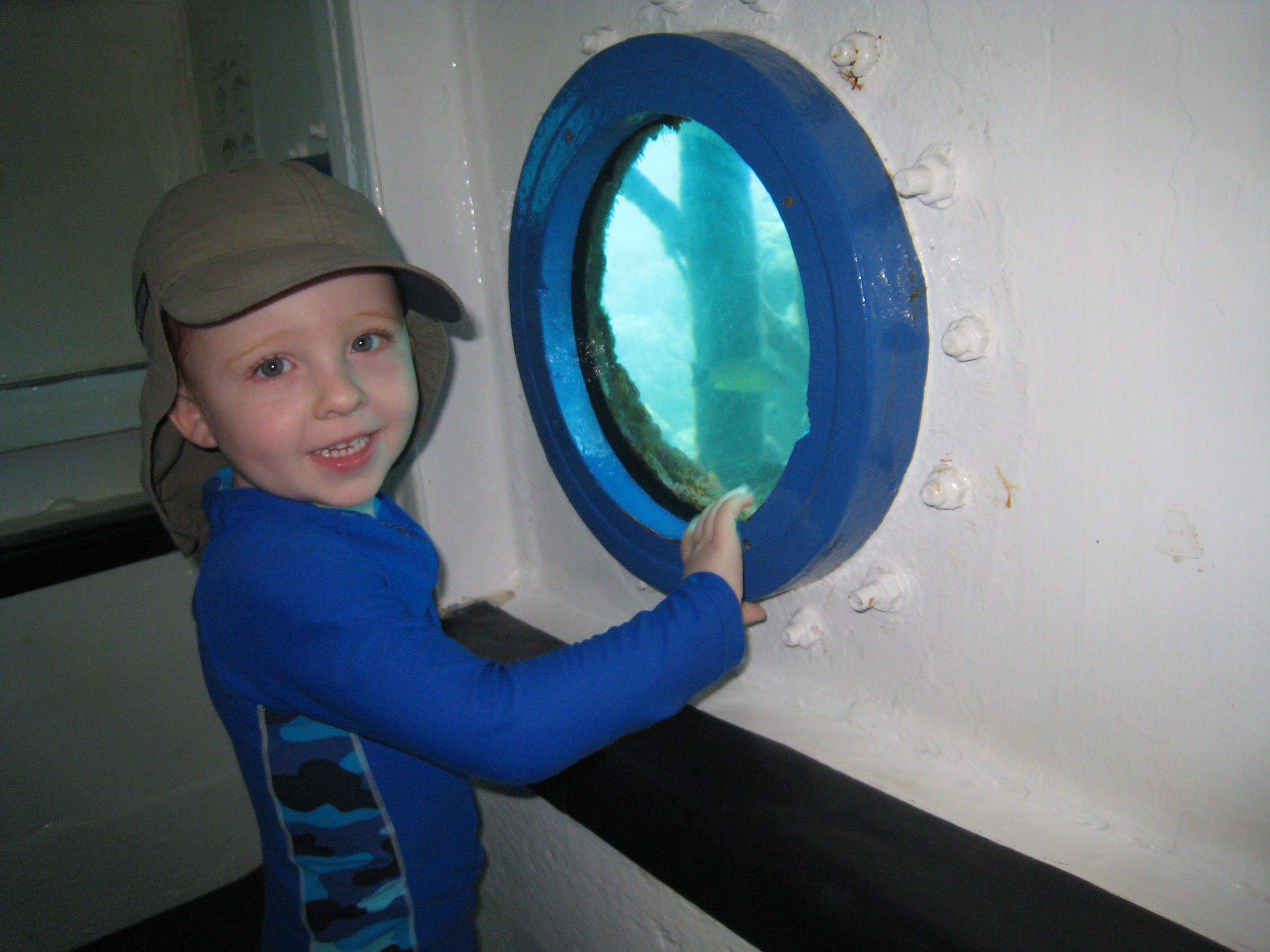 Mark is actually taking this photo with his underwater camera as he scuba dives right by the underwater observatory where the kids and I are looking for Nemo. See us through the glass behind the other scuba diver?