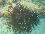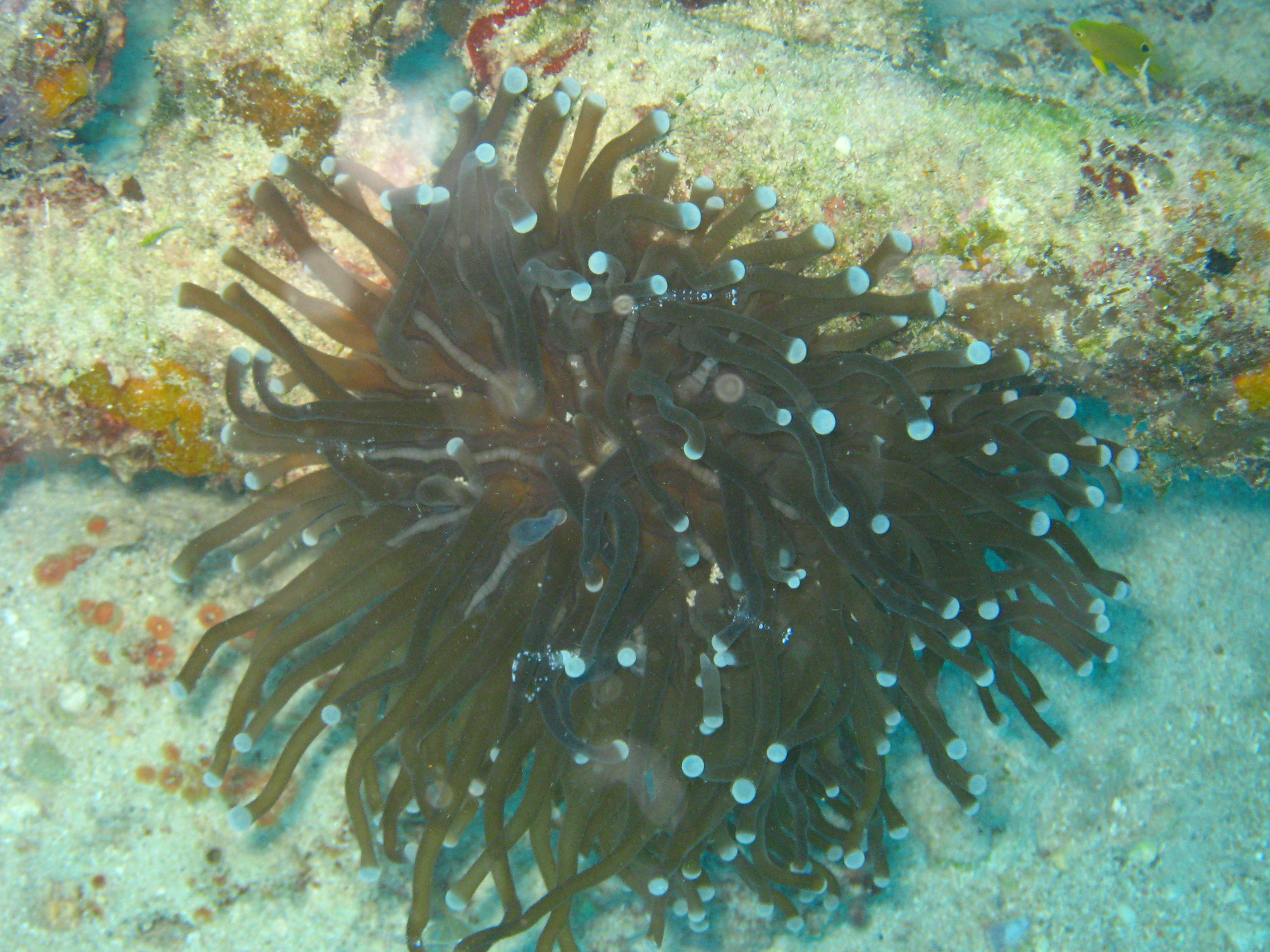 Various fish darting in the anemone. Can you see Nemo, the clownfish in there? :)