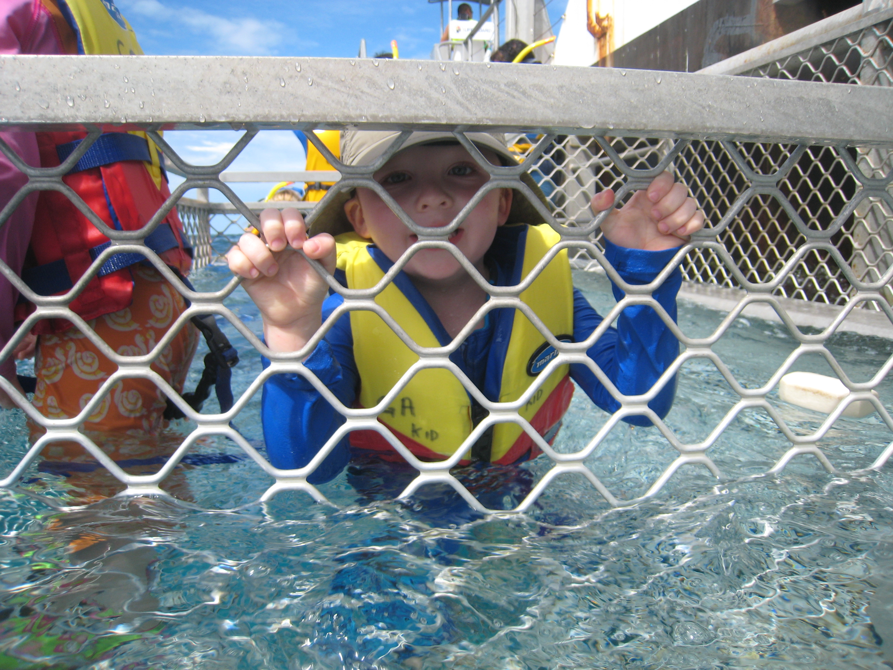 A little cage where kids were safe from big aquatic life and able to stand safely until they had the courage to swim. We were operating our dives and snorkelling from a pontoon in the middle of the GBR, where we were able to stay for 3 hours before the 90-minute return trip to the harbor.