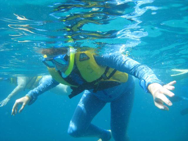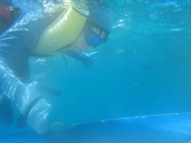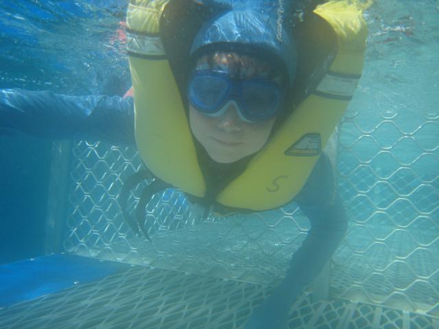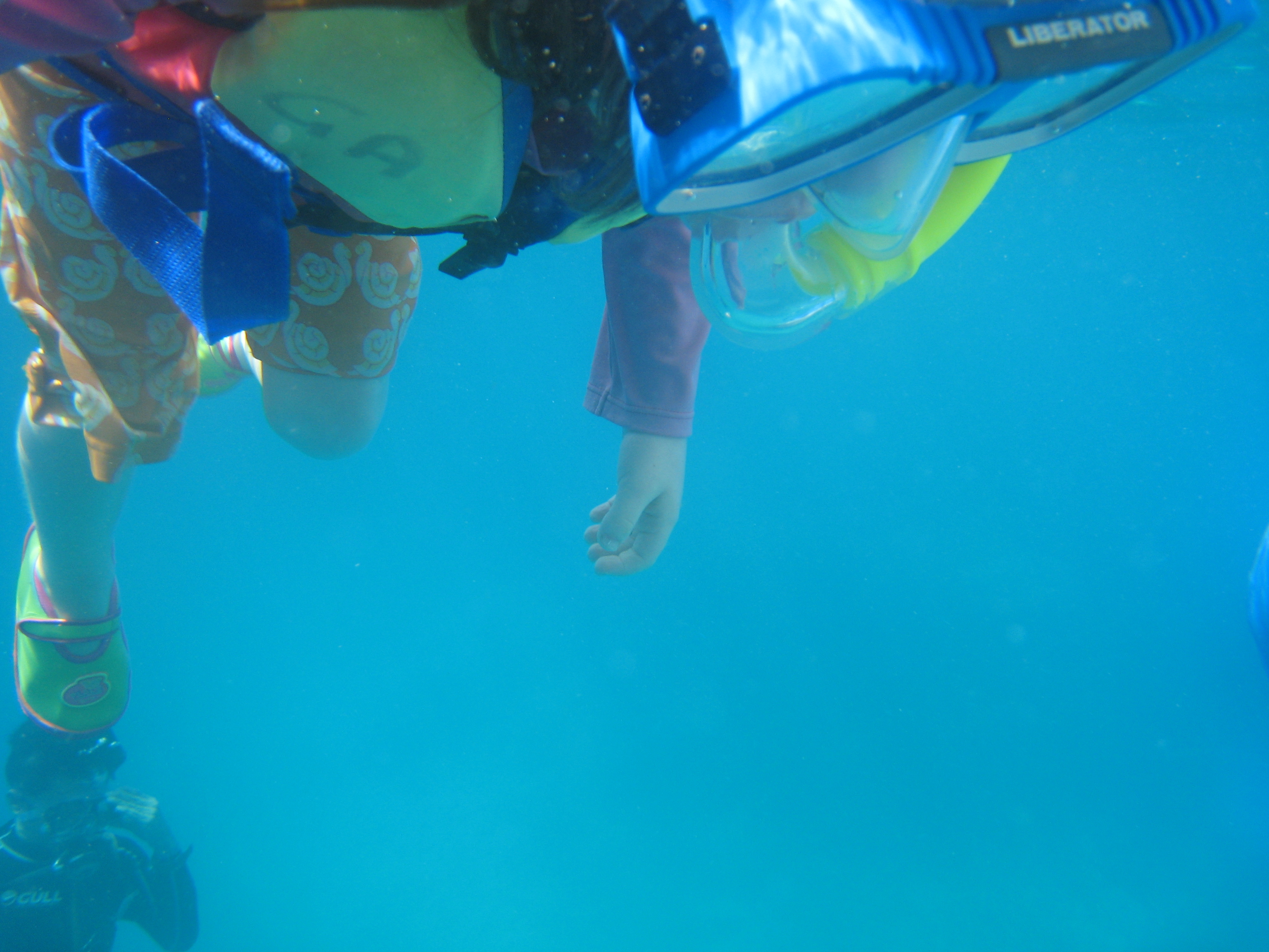 That is actually a shot of Caroline from below (Mark took it) as she snorkels on the surface water.