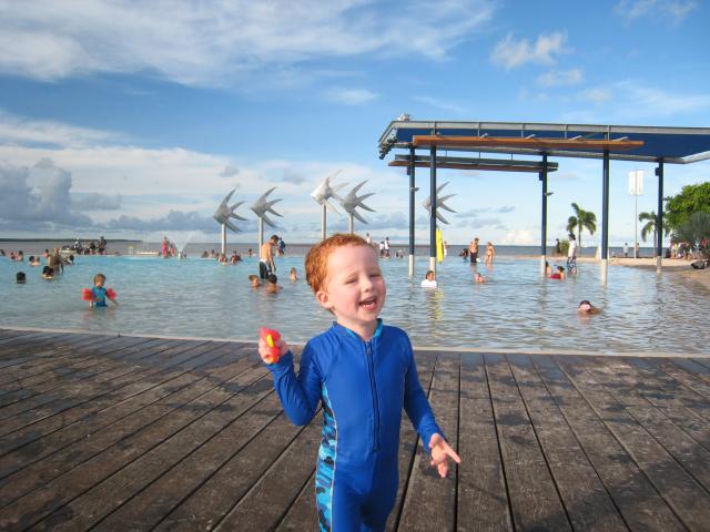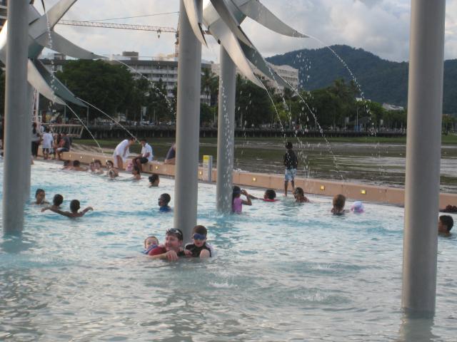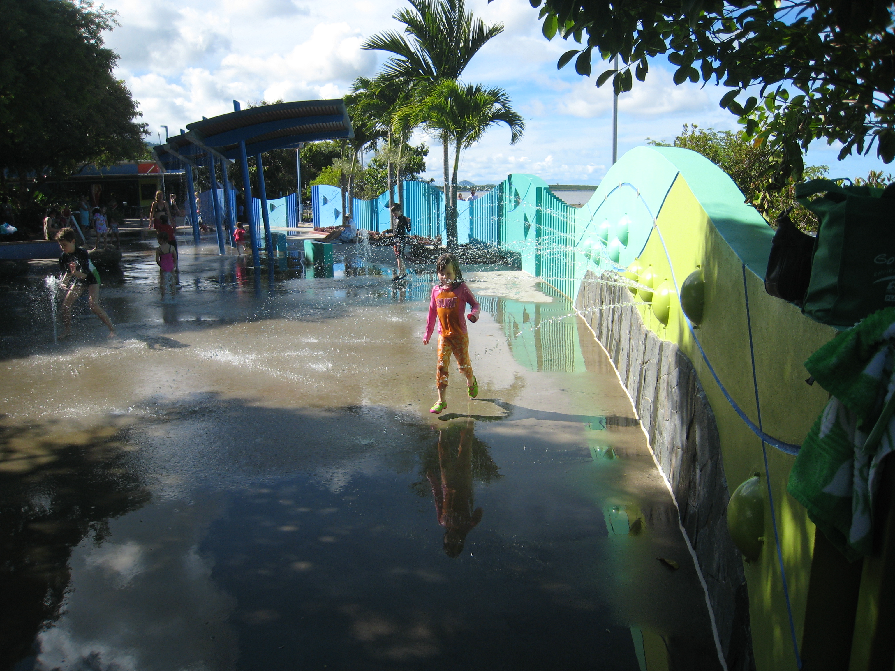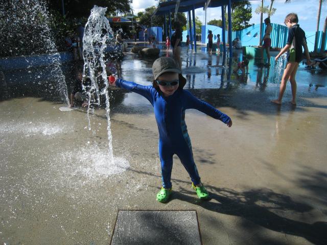 We found a fun playground down on the Esplanade in Cairns on our last day. It stretches for over a block and features some fun water sprinklers.