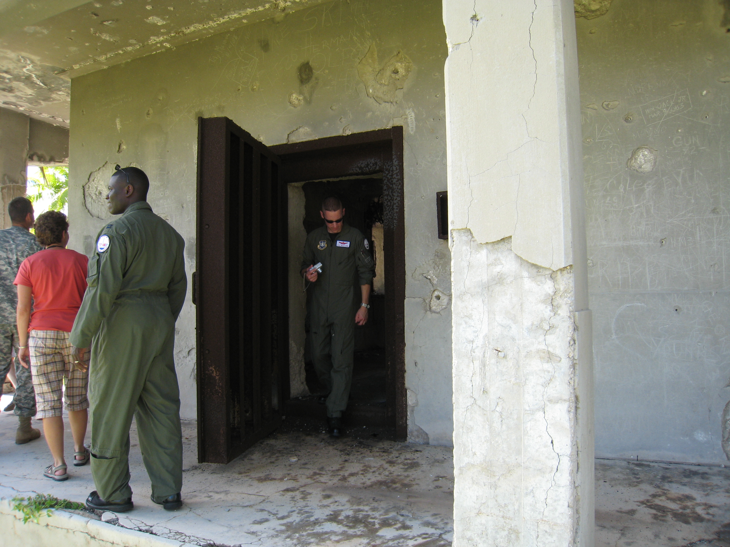 Despite the extremely corrosive environment, these blast doors still swing on their brass hinges.