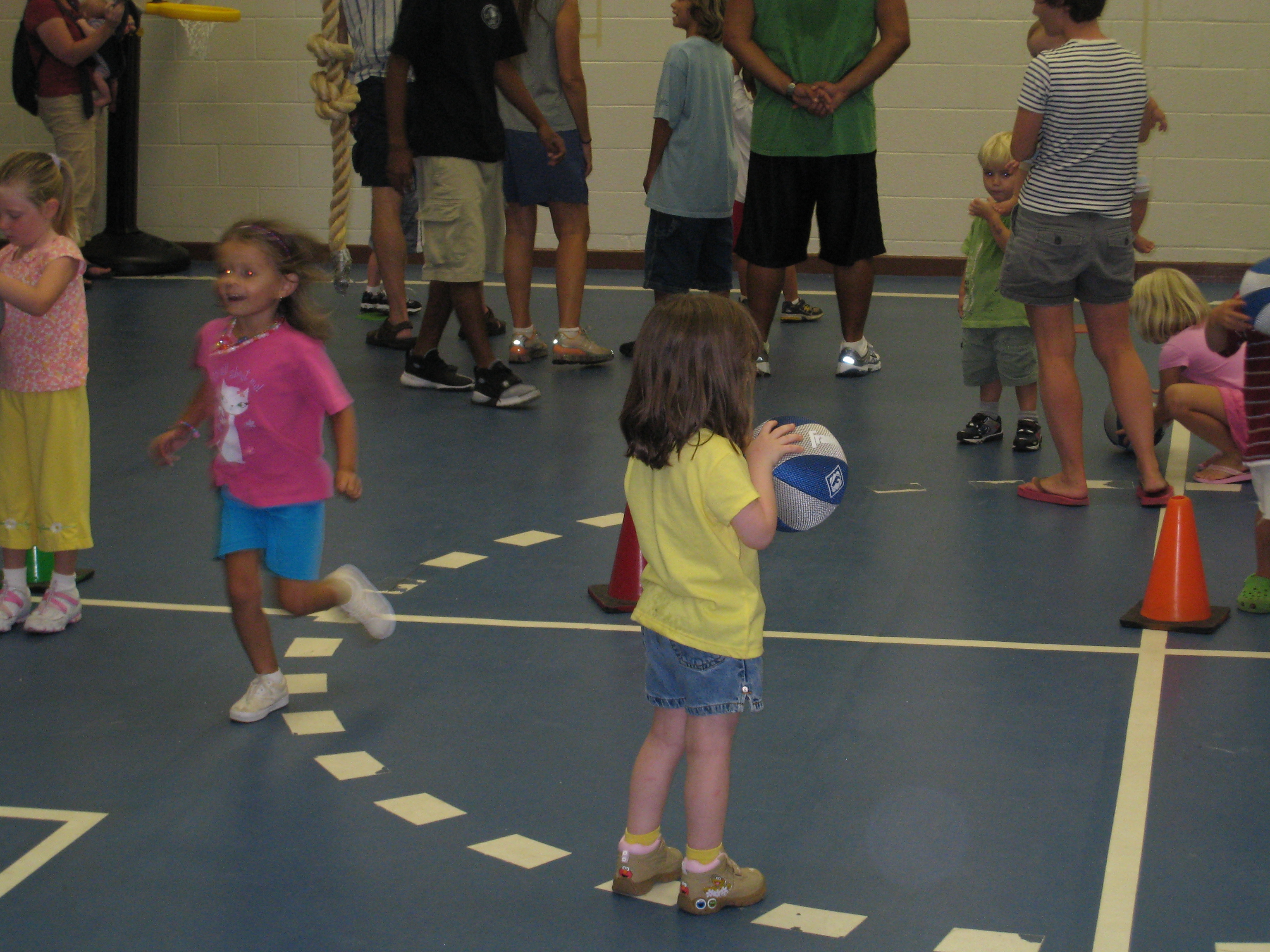 Not at all to be left out of basketball season, Caroline tries her hand at Start Smart Basketball once a week with Daddy. (If that gymnasium looks small, it is! :) )