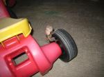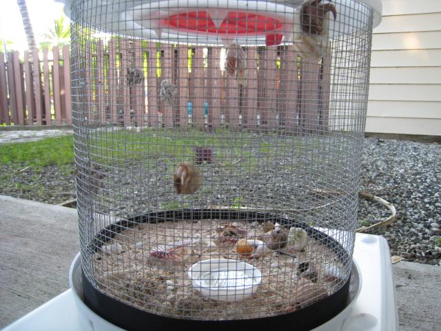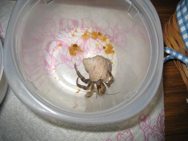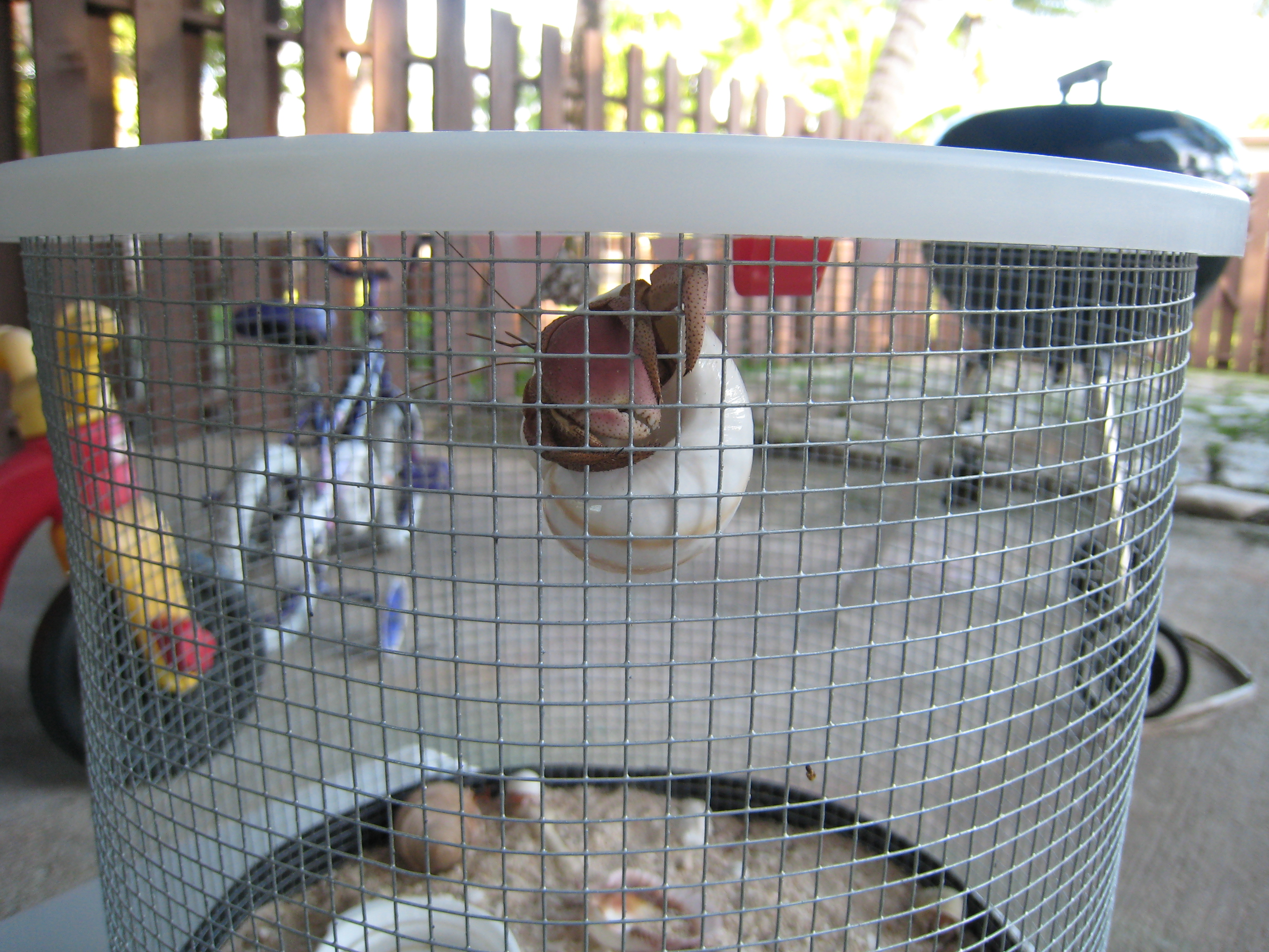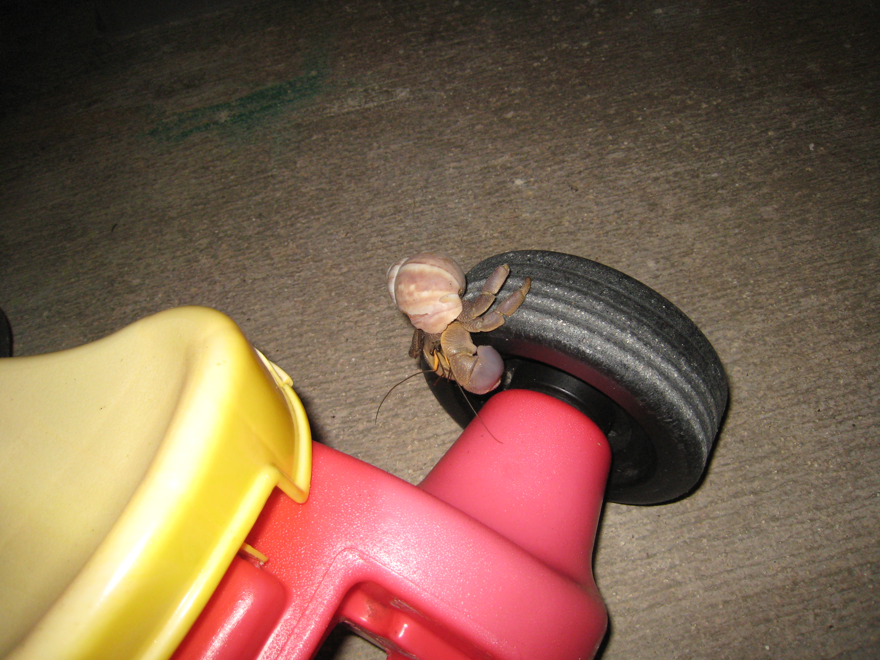 This large "hermie" just found his way to our patio after the rainstorm and brought a few smaller friends with him. Perhaps he came to try to set his pals free from captivity at the Smith residence. Whatever his reason, he is a much more welcomed presence than the tree lizards, coconut rats, geckos, and skinks that also seem to crawl either inside or outside our home from time to time. He's just lucky we already have 10 hermit crabs in our cage. :)
