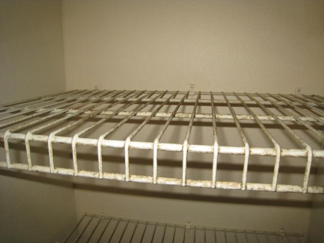Wondering what this is? Mold is rampant in these homes, and one of our closets is just way too musty and mold-infested to put anything in it. Multiple dehumidifiers and several air purifiers have become our new home appliances of choice.