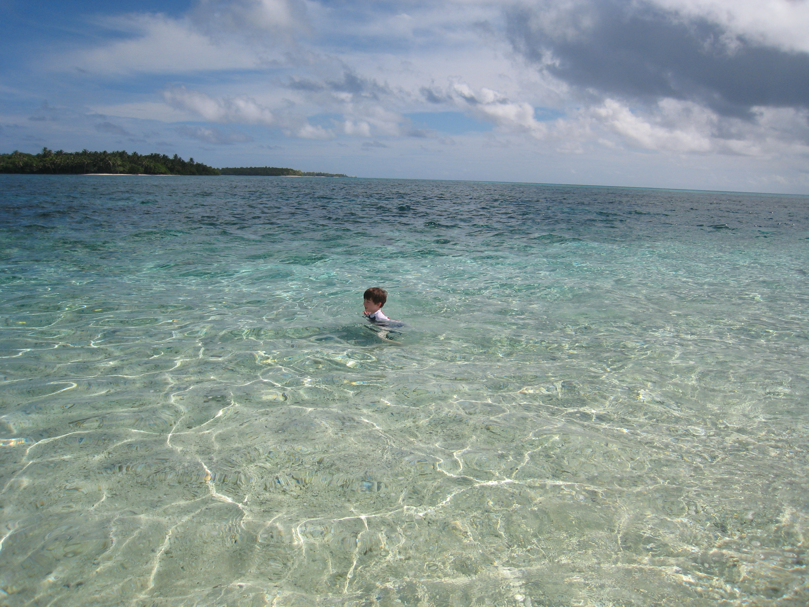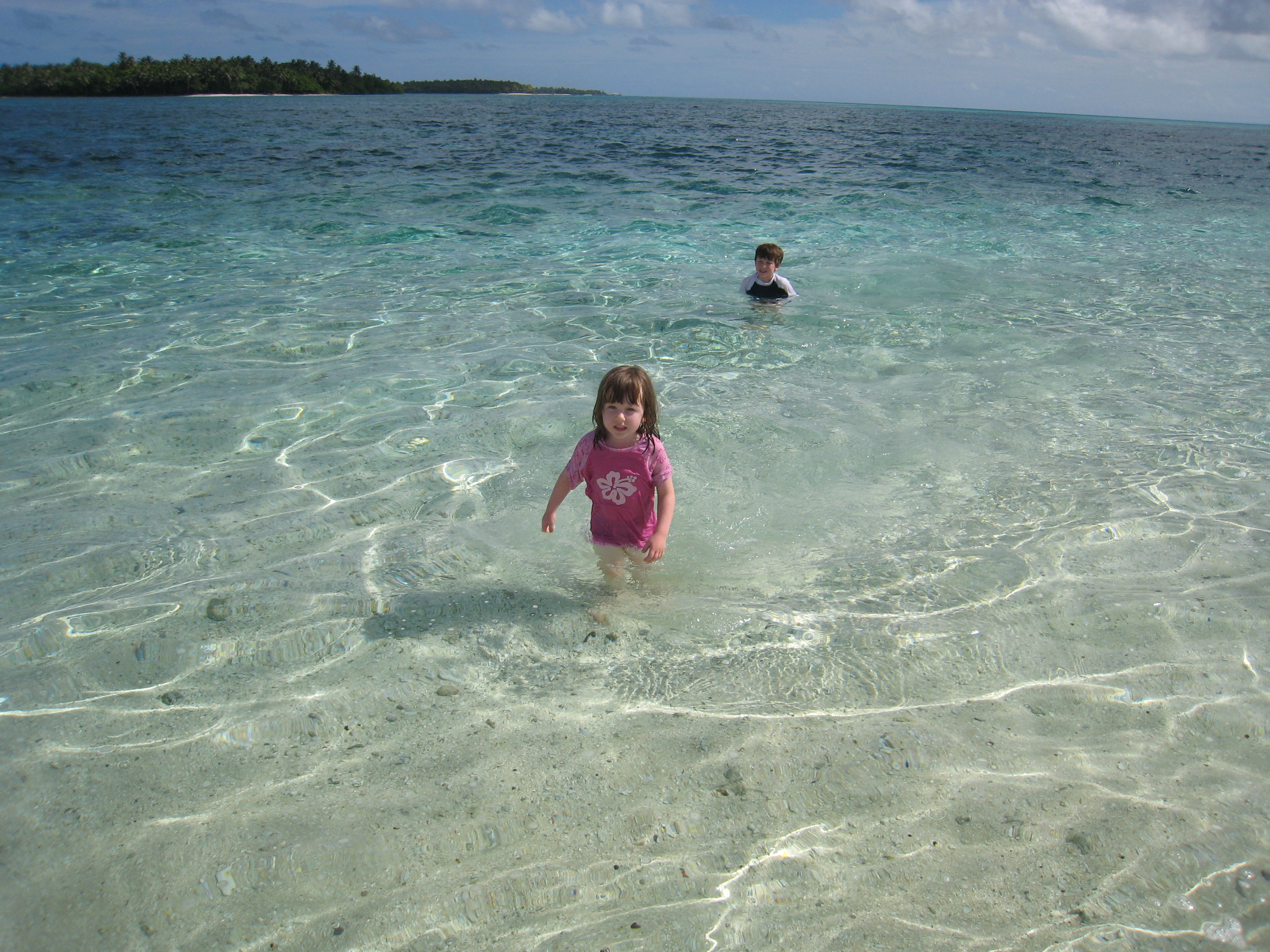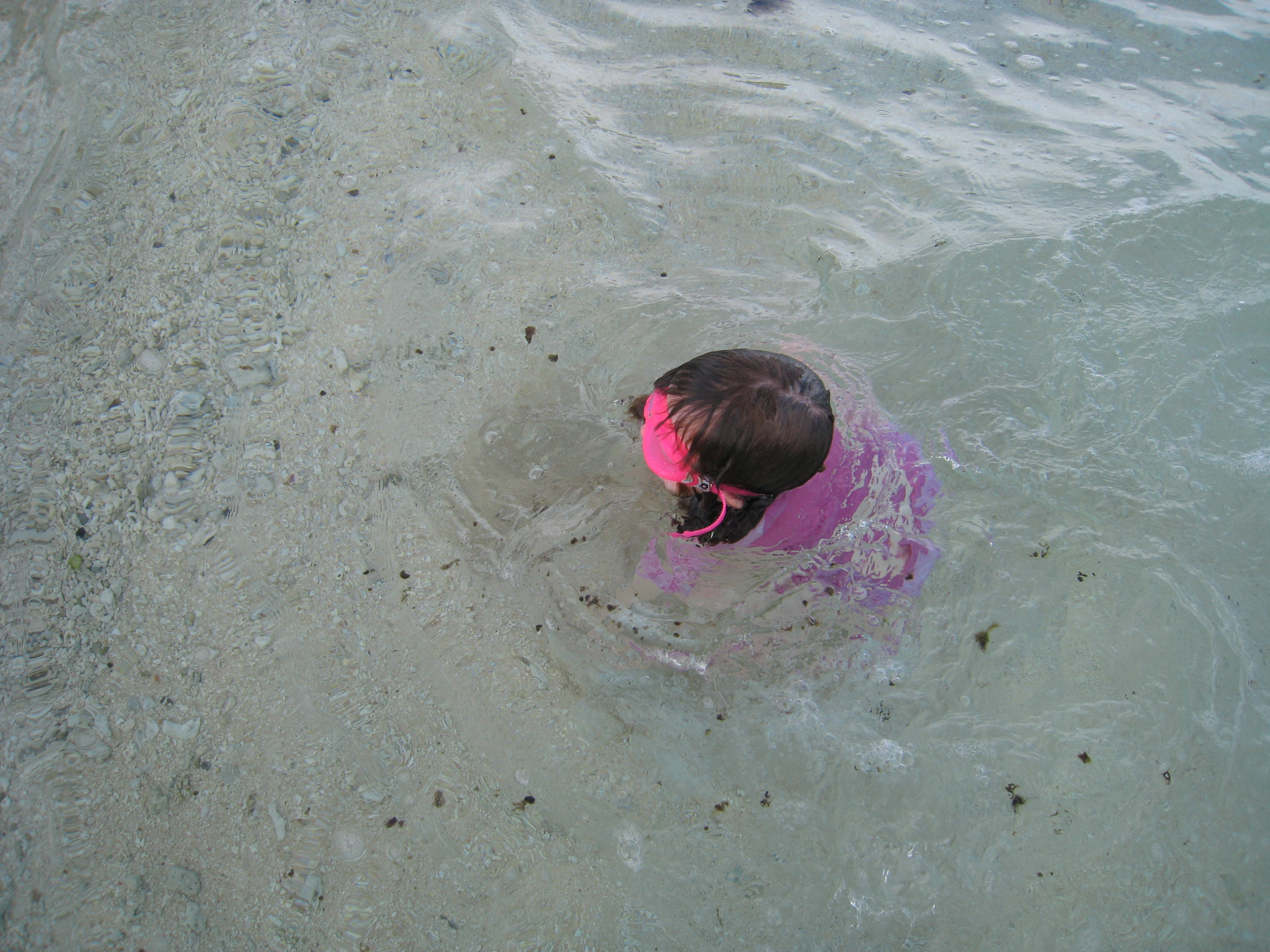 We took a flight to Roi on Saturday evening and found that kids are allowed in the pool on any day but Sunday. So, after having dinner in the dining hall, we went for a quick swim in the pool under the lights.