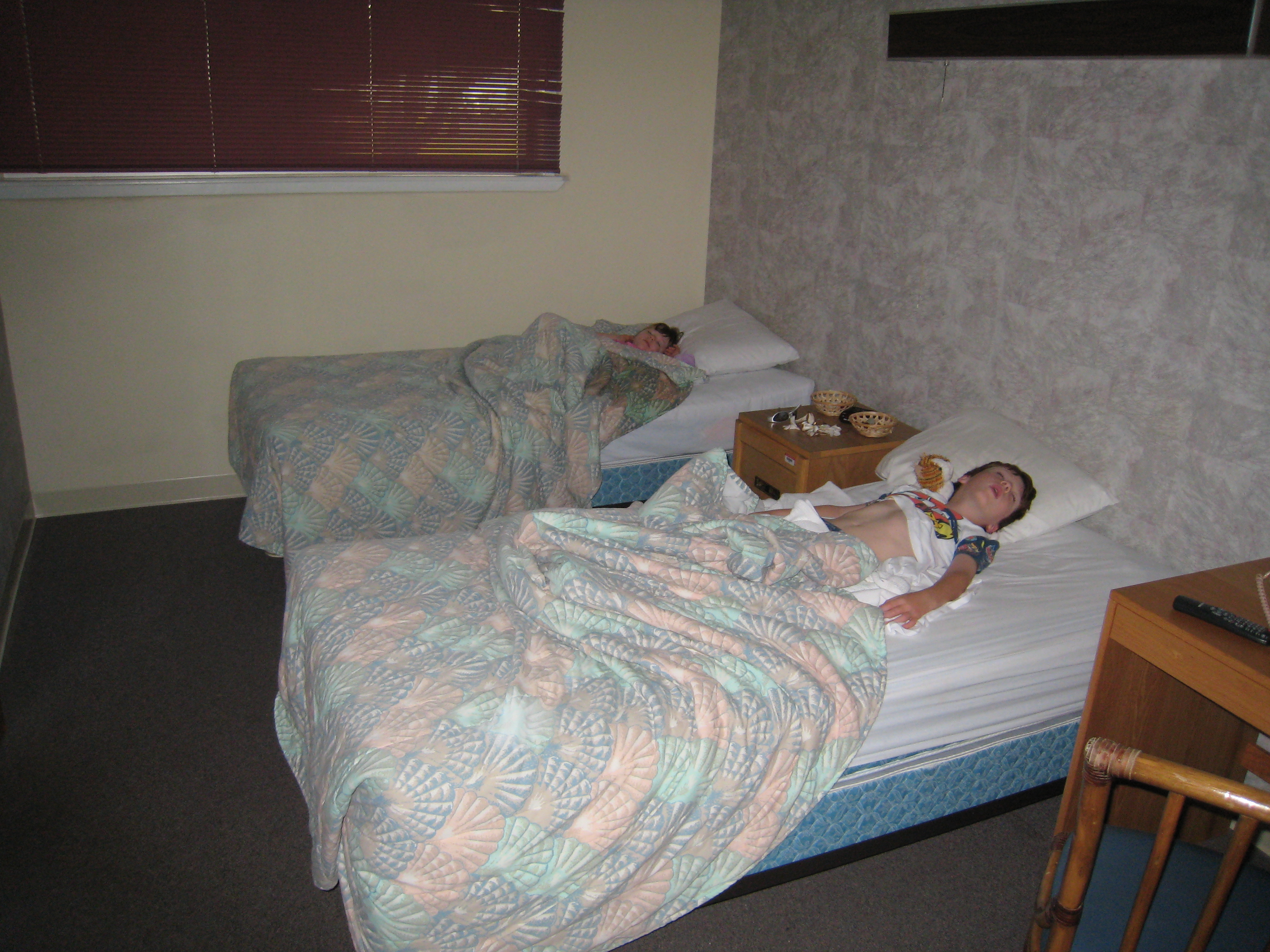 After the excitement of being away and sleeping in the same room, the kids finally fell asleep.