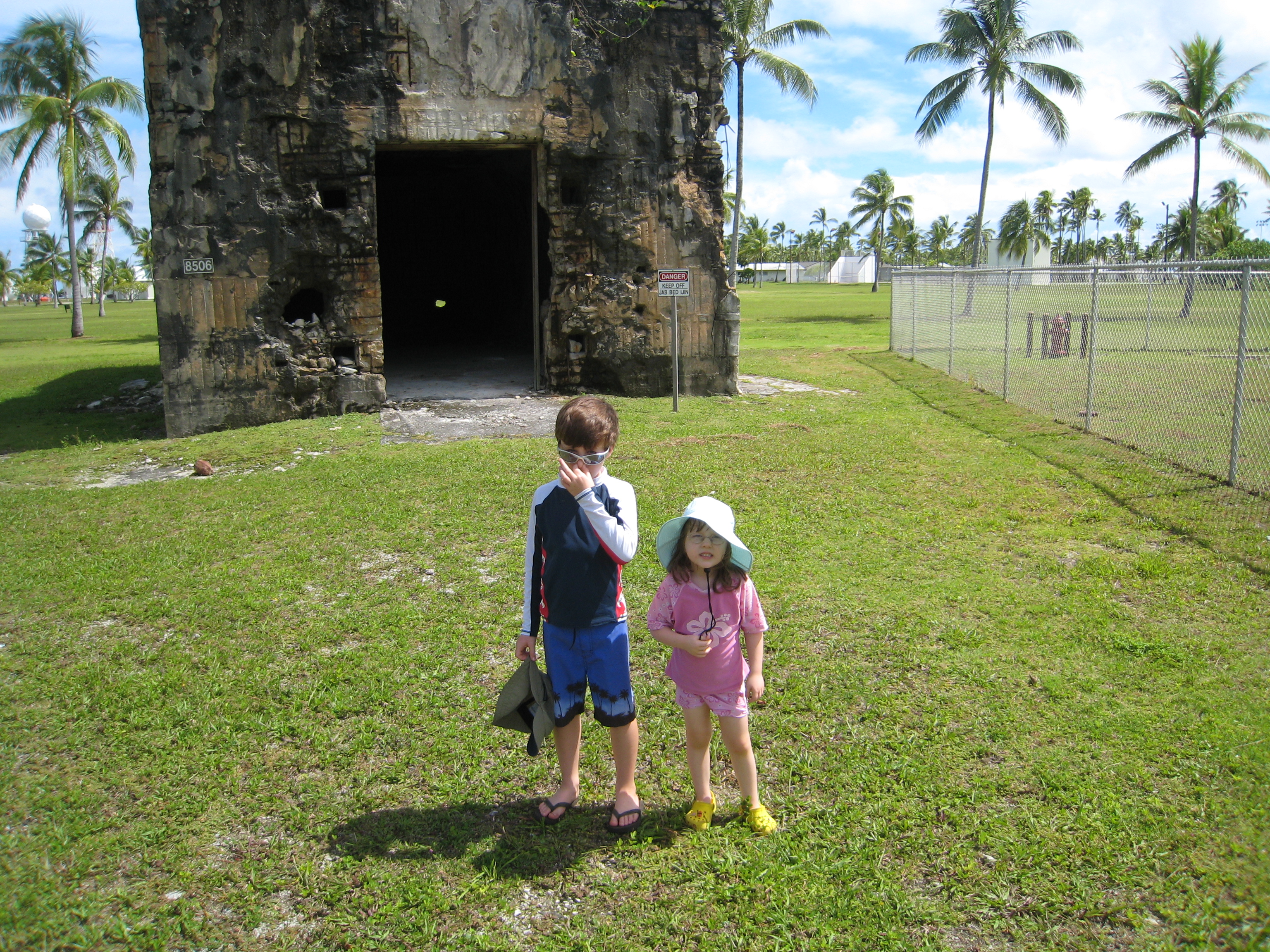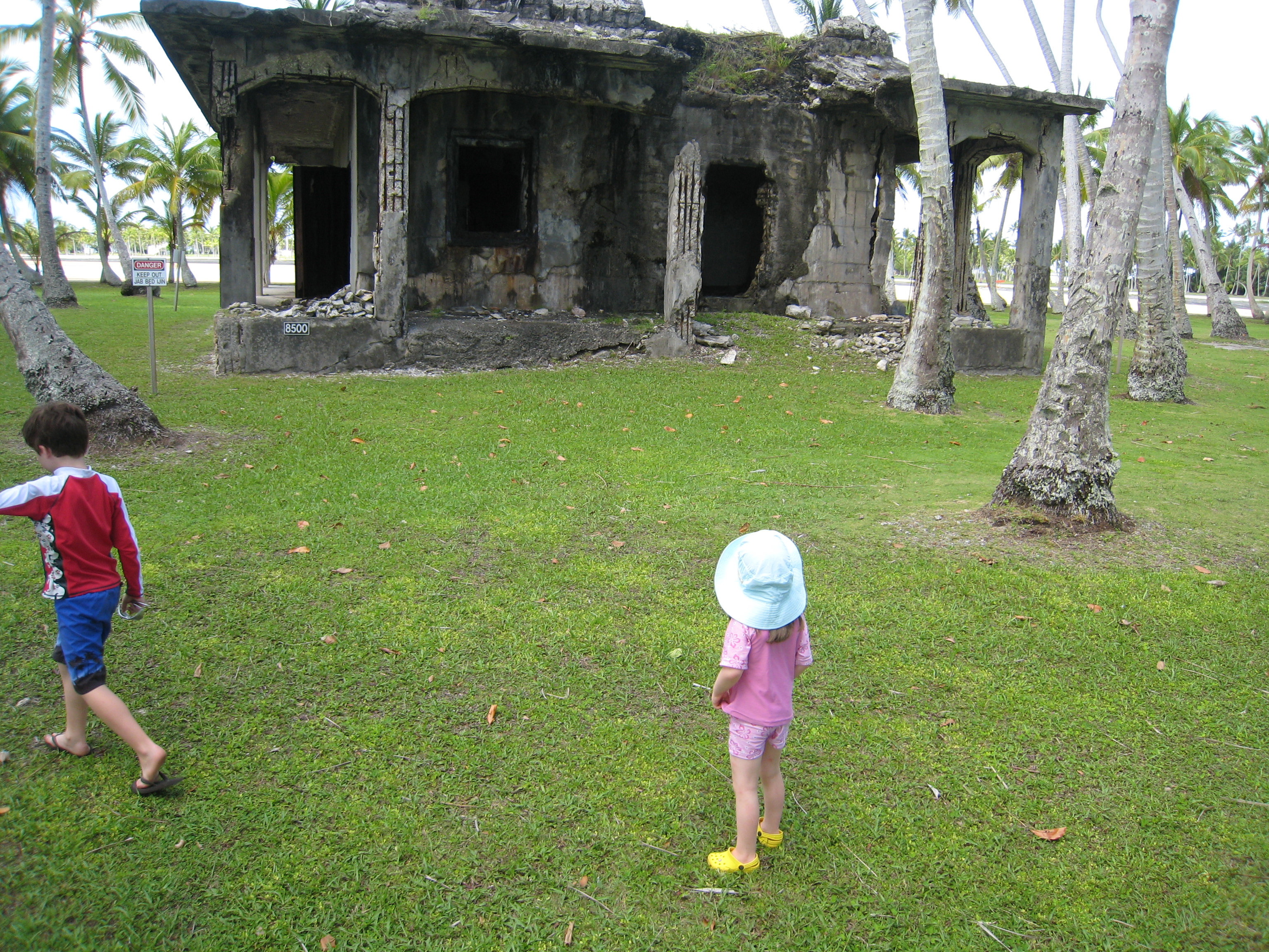 Some sort of Japanese bunker that is still standing. This one is located next to the sewage treatment plant (the fence to the right). You can see that the kids are enjoying the fragrance.