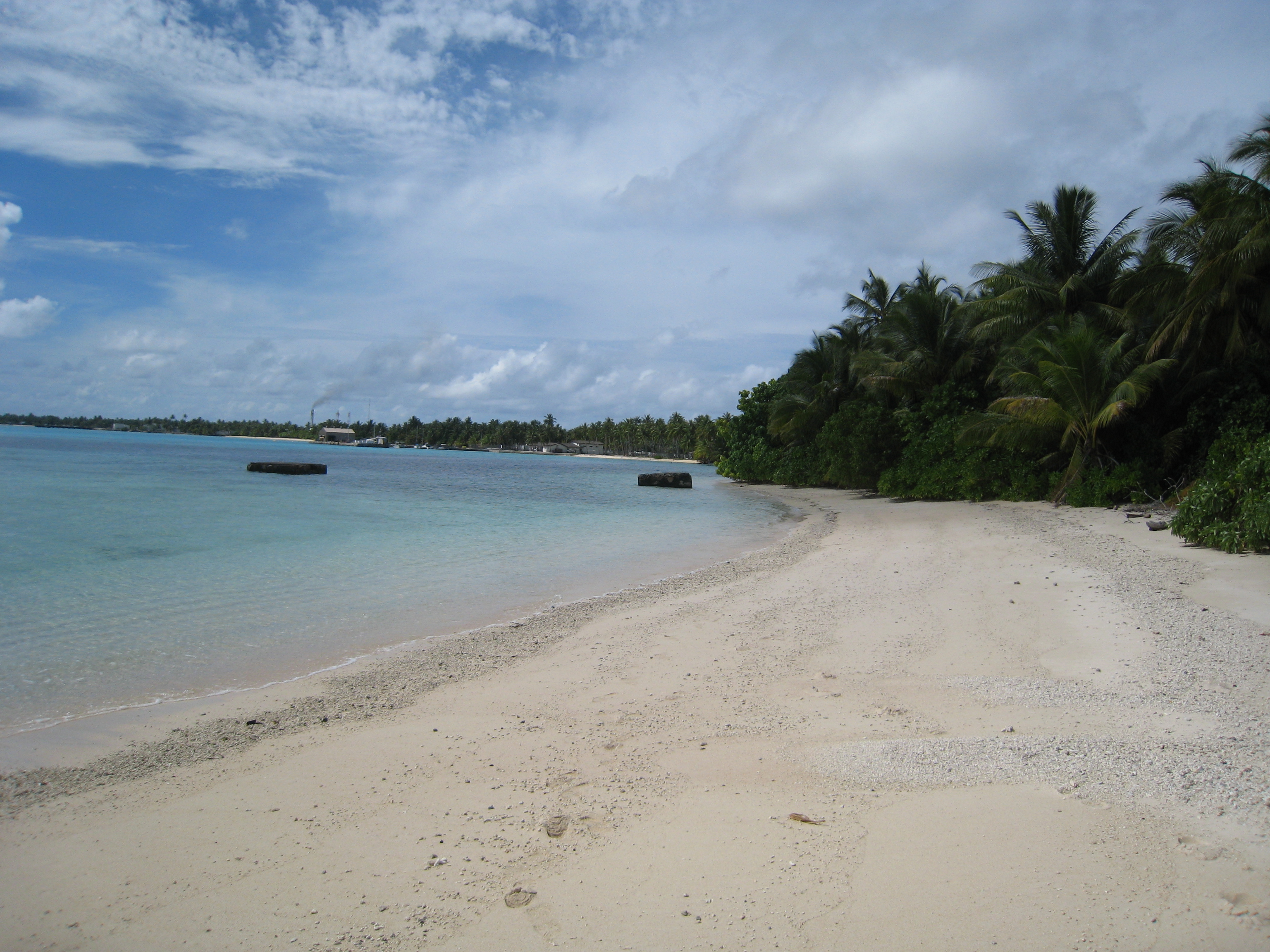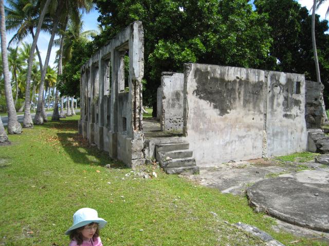 The American use of Kwajalein Atoll has the main contingent of people and supplies on the island of Kwajalein (where we live). During the Japanese occupation, however, the islands of Roi and Namur were connected by landfill and became the main hub of their activity. There was even a Japanese torpedo factory here. In this picture, you can see the ruins of the Japanese headquarters building.