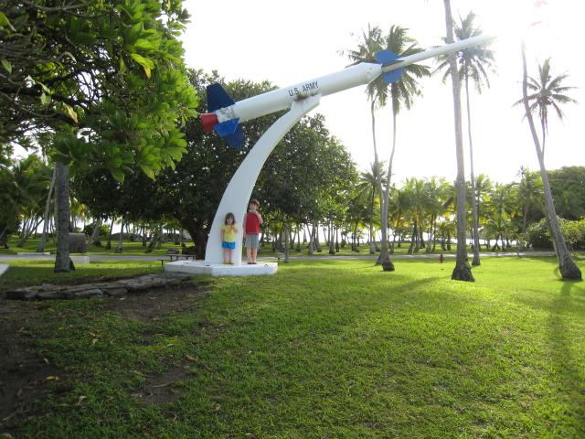 This missile at the Roi air terminal symbolizes the current mission of the Army at Kwajalein Atoll.
