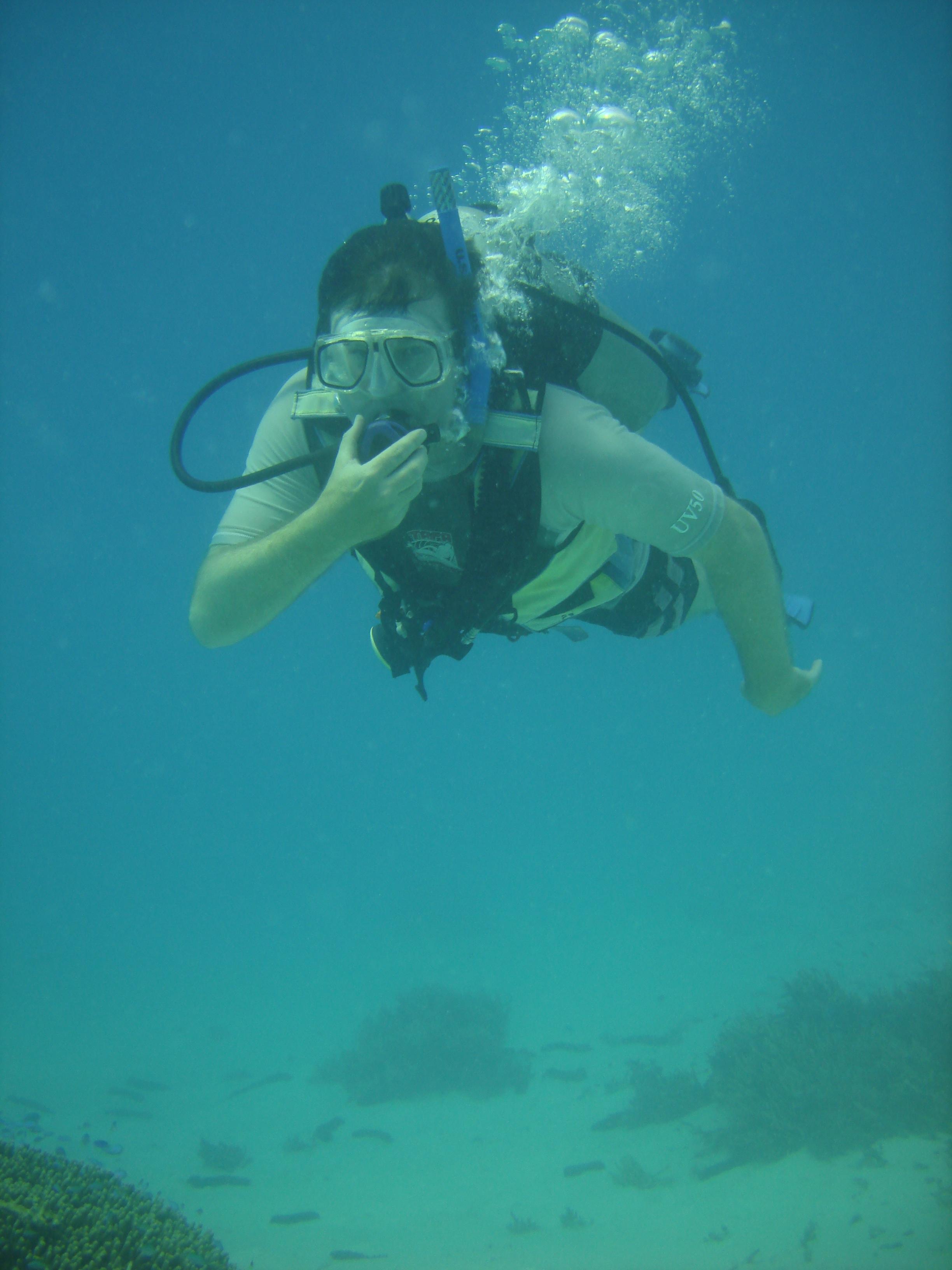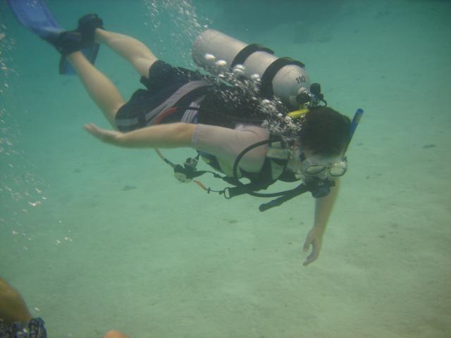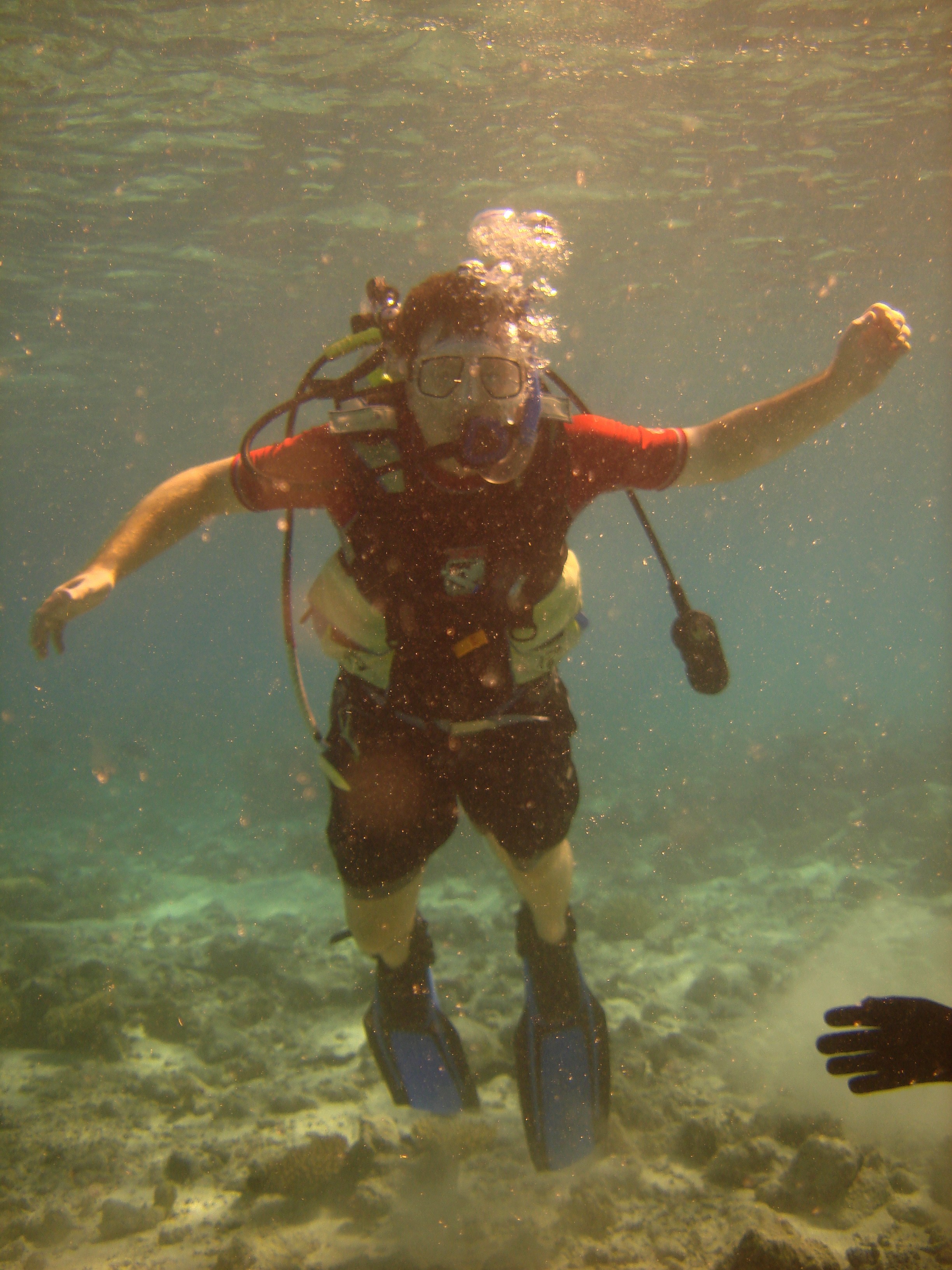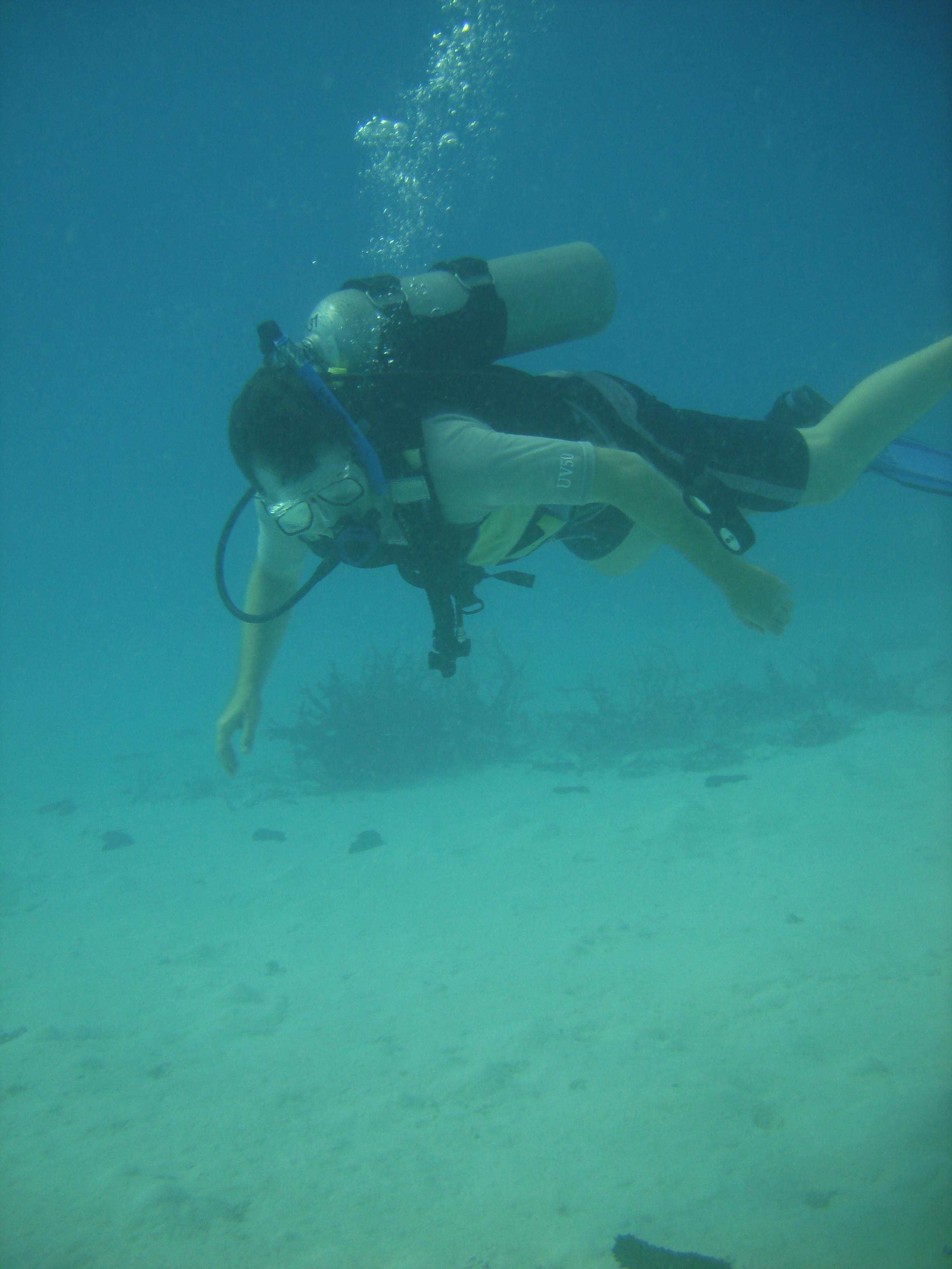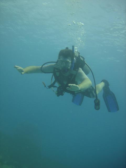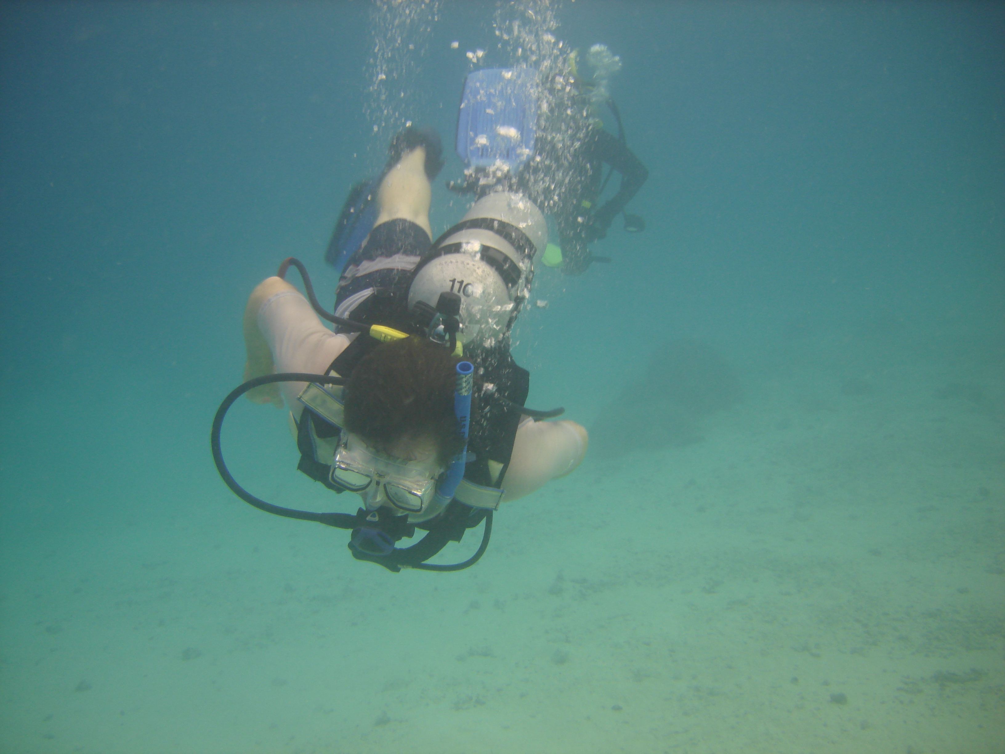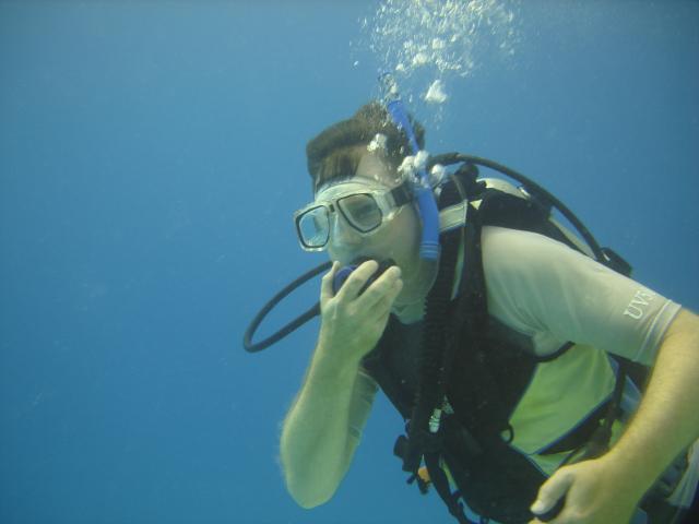 After completing some exercises on the surface, which was a bit choppy, we were ready to descend. This picture was taken just moments before I hurled. Yes, I have first-hand experience that you can in fact hurl through a regulator and continue breathing underwater.